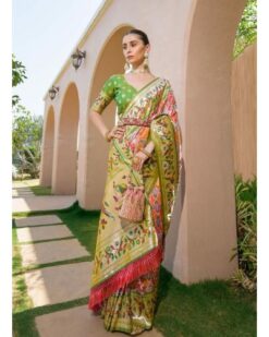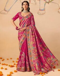 Elegant Dola Silk Wedding Saree with Rich Embroidery & Fancy Border