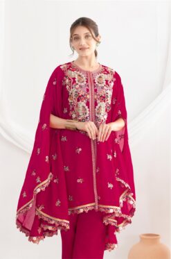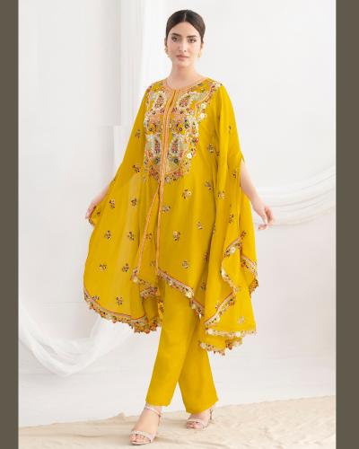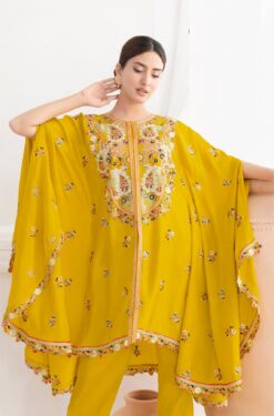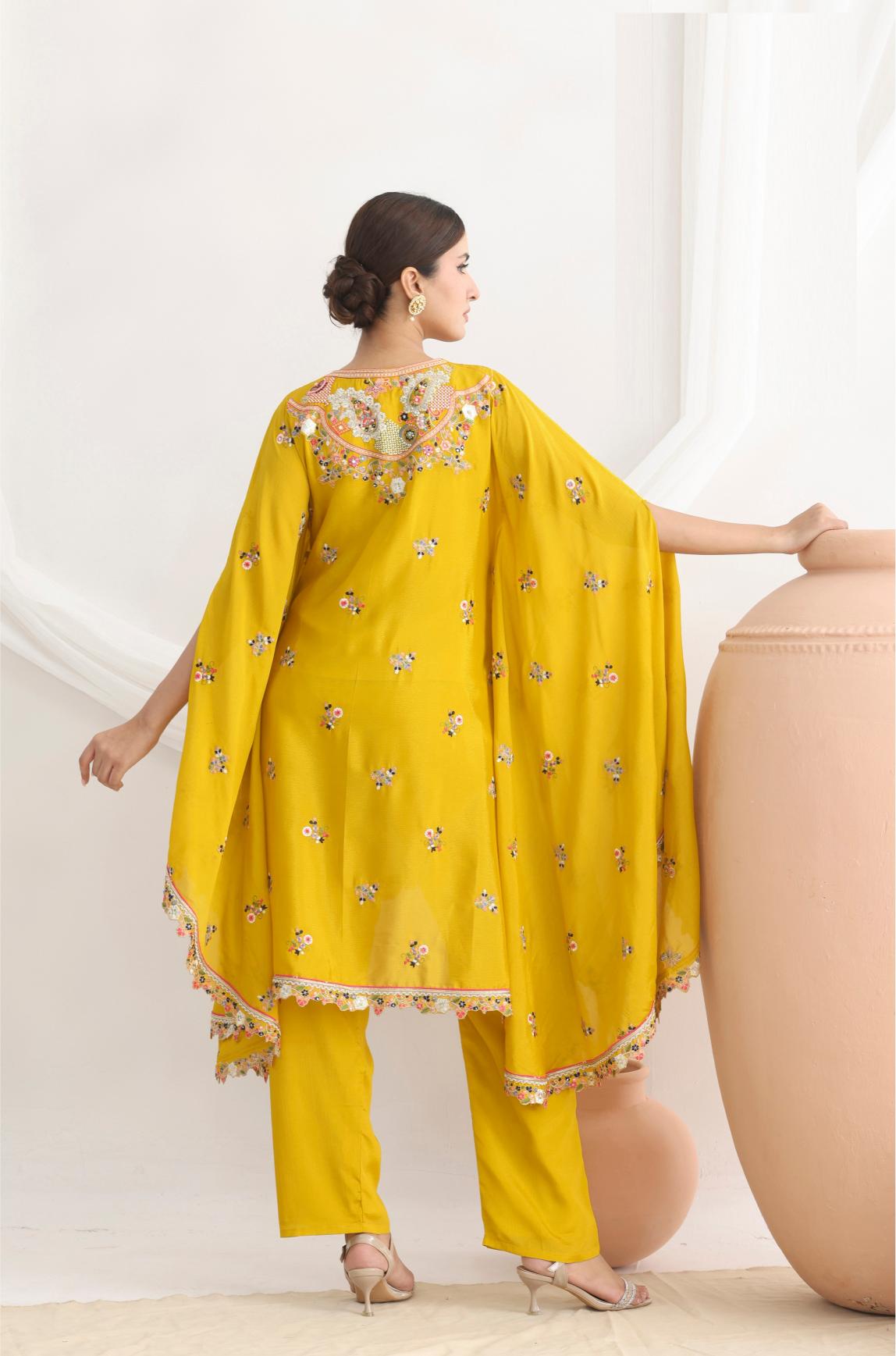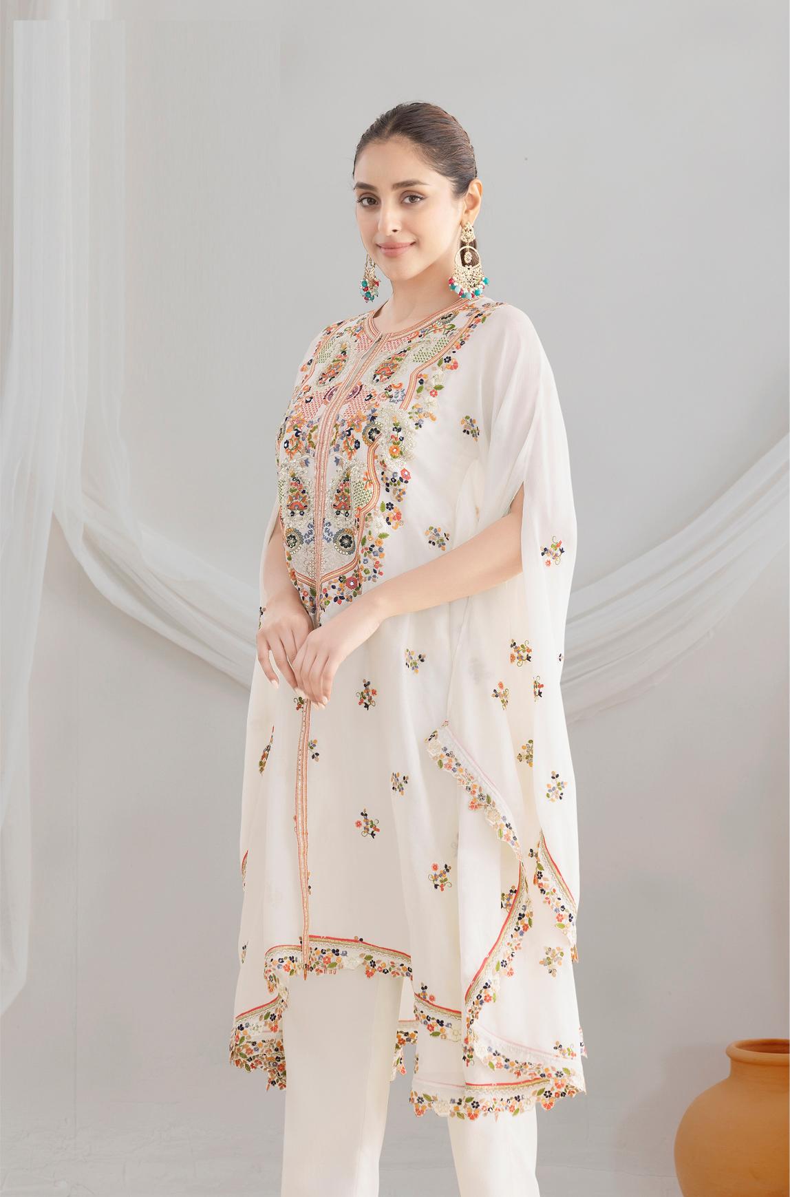 - Top: Elegant flower embroidery kaftan on premium chinnon fabric