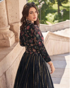 - FABRIC – VISCOS CHINON SILK / PREMIUM SILK / VISCOS FABRIC SKIRT( FRONT AND BACK EMBROIDERED WITH CANCAN )