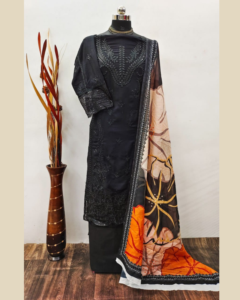 Tebi Silk With Digital Print - BOTTOM:- Heavy Cotton
