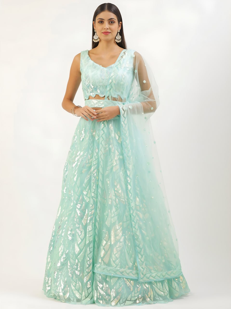 Designer Wedding Lehenga with Soft Net Sequin Detailing