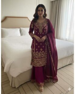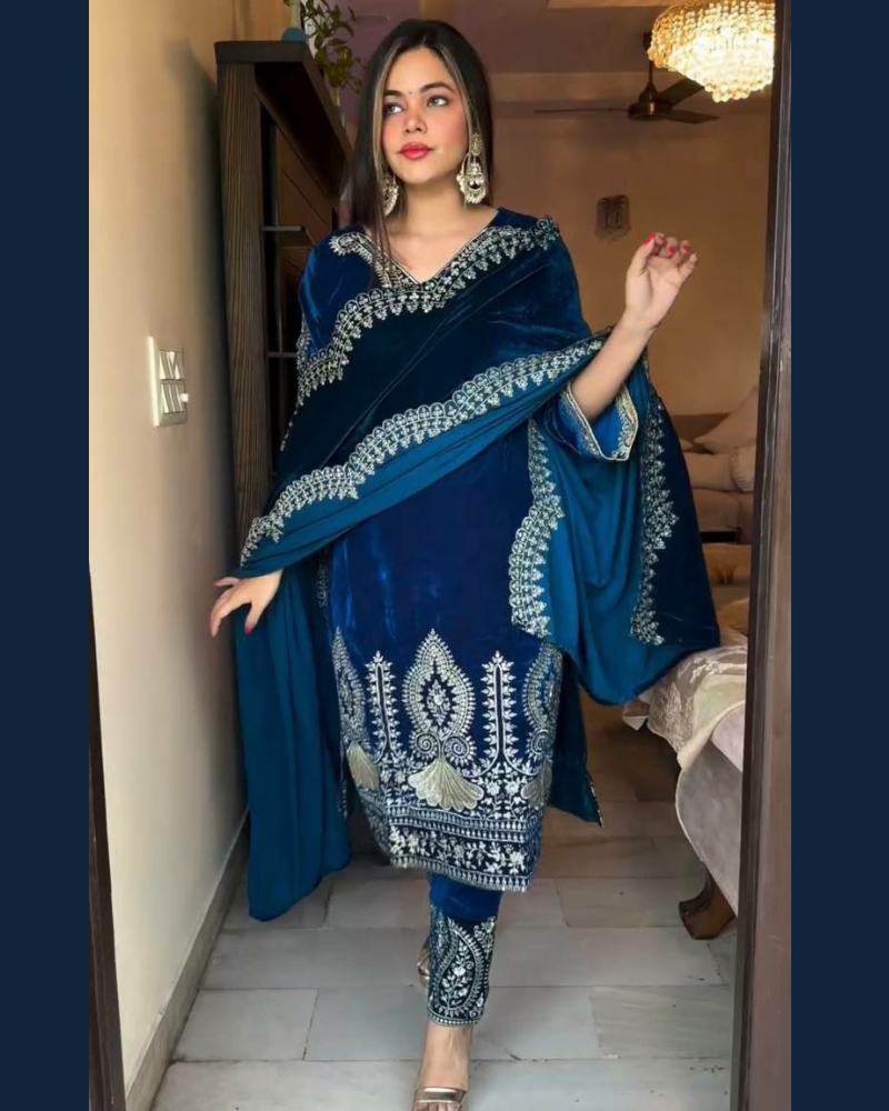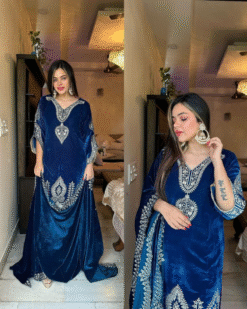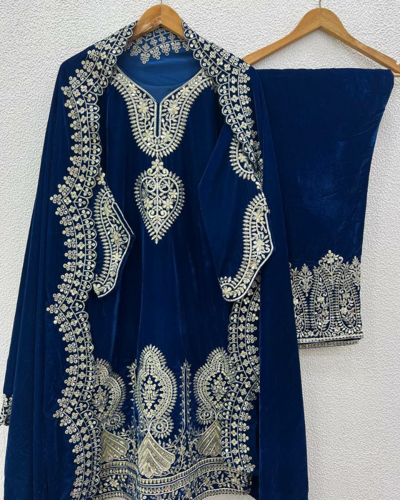 - Top Fabric : Heavy Viscose Velvet With Heavy Embroidery Sequence Work With Full Sleeves