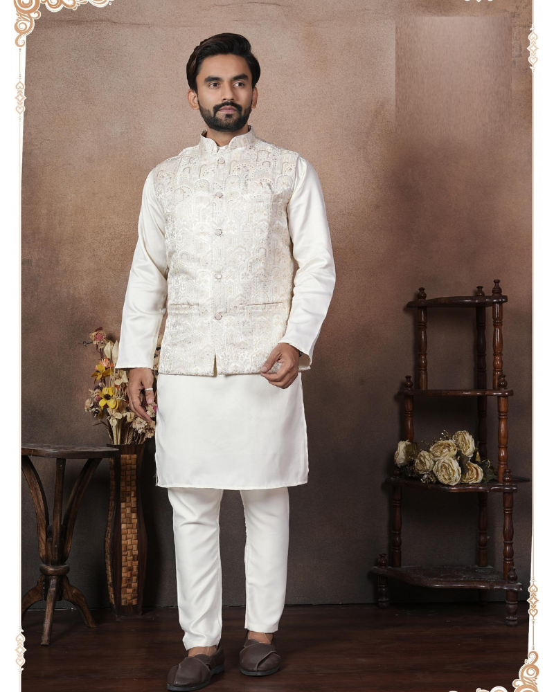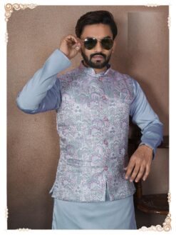 Men’s Kurta Pajama Set with Jacquard Koti & Fancy Work