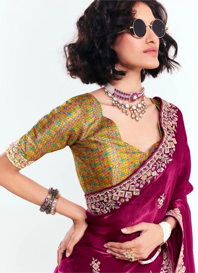 - BLOUSE : Sequins & Cording embroidery work in Space Fancy Fabric (UNSTITCH)