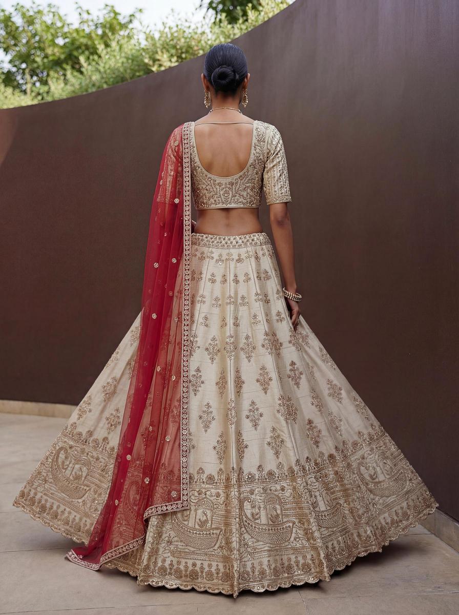 Elegant Bridal Silk Lehenga with Intricate Handwork & Zari Embellishments