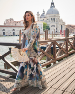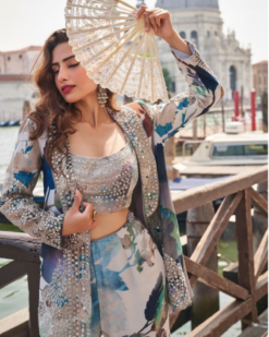 - FABRIC – REAL PREMIUM CHINON SILK ( HEAVY EMBROIDERED FRONT AND BACK HAND MIRROR WORK JACKET WITH BLOUSE AND GHARARA )