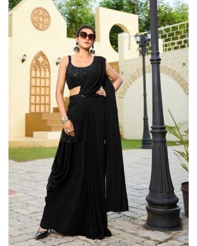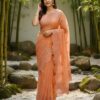 WORK: Hand work with Piping & sequence work - LENGTH : The Total Lenght of the Saree is 6.3 mtrs including Blouse Piece. ||Saree Fabric Size : Length – 5.25 Mtrs (approx), Width – 44″ Inches (approx) || Blouse Size : Unstitich Fabric – Length : 1 mtr (Approx), Width : 44″ (Approx.) – Unstitched blouse fabric comes with saree so you can make as you like