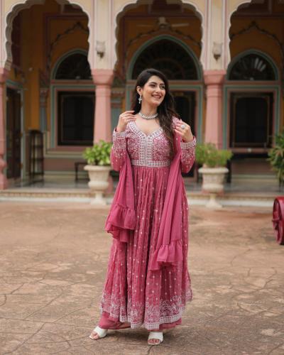 FABRICS & WORK :- Faux Georgette with Rich Sequins & Thread Embroidered work