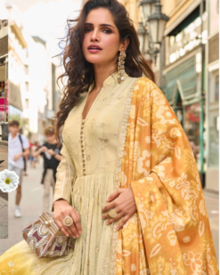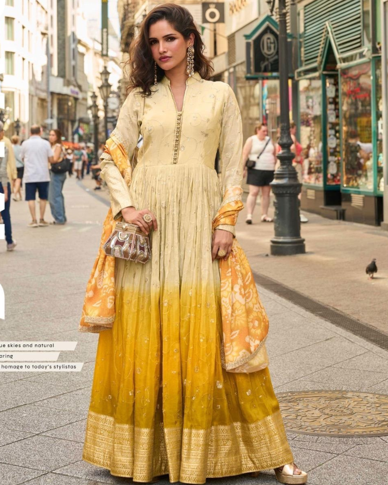 - FABRIC – PREMIUM REAL SIMAR SILK ( FULL HEAVY LOOK FRONT AND BACK EMBROIDERED SIMAR TISSUE SILK GOWN WITH EMBROIDERED DIGITAL DUPATTA )
