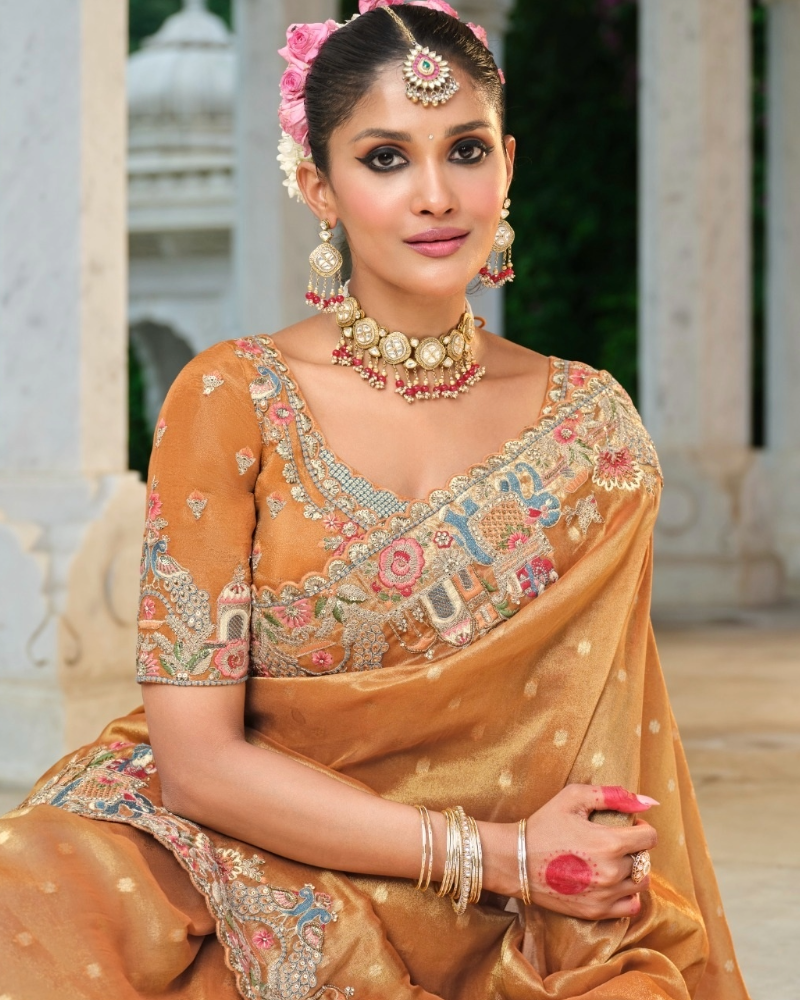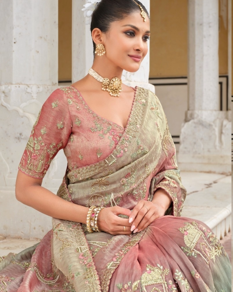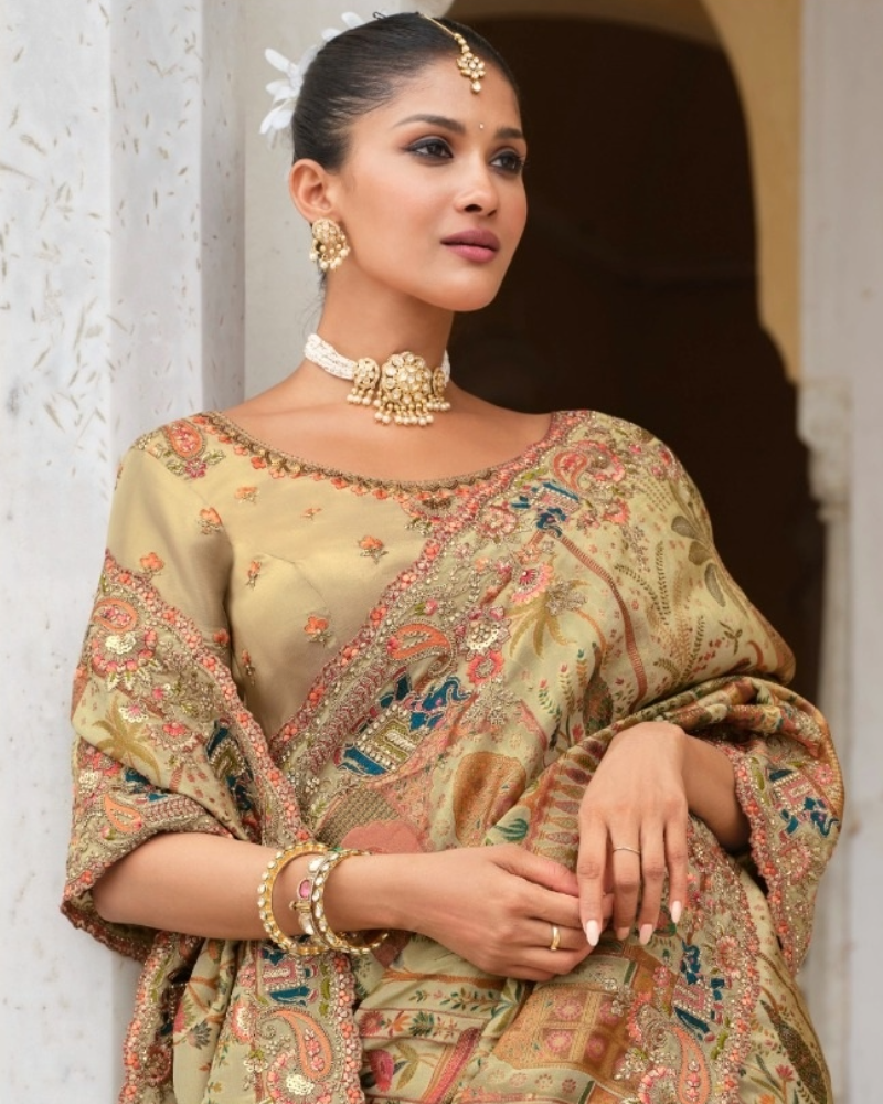 - Saree Detail Pure Silk With Heavy Embroidery Khatli Work